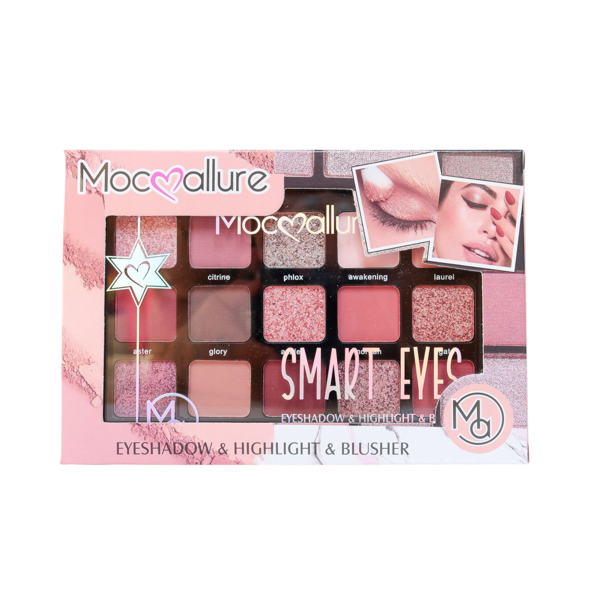 Sombra de Ojos, Iluminador y Colorete 15 colores. 3 en 1. Mocoallure