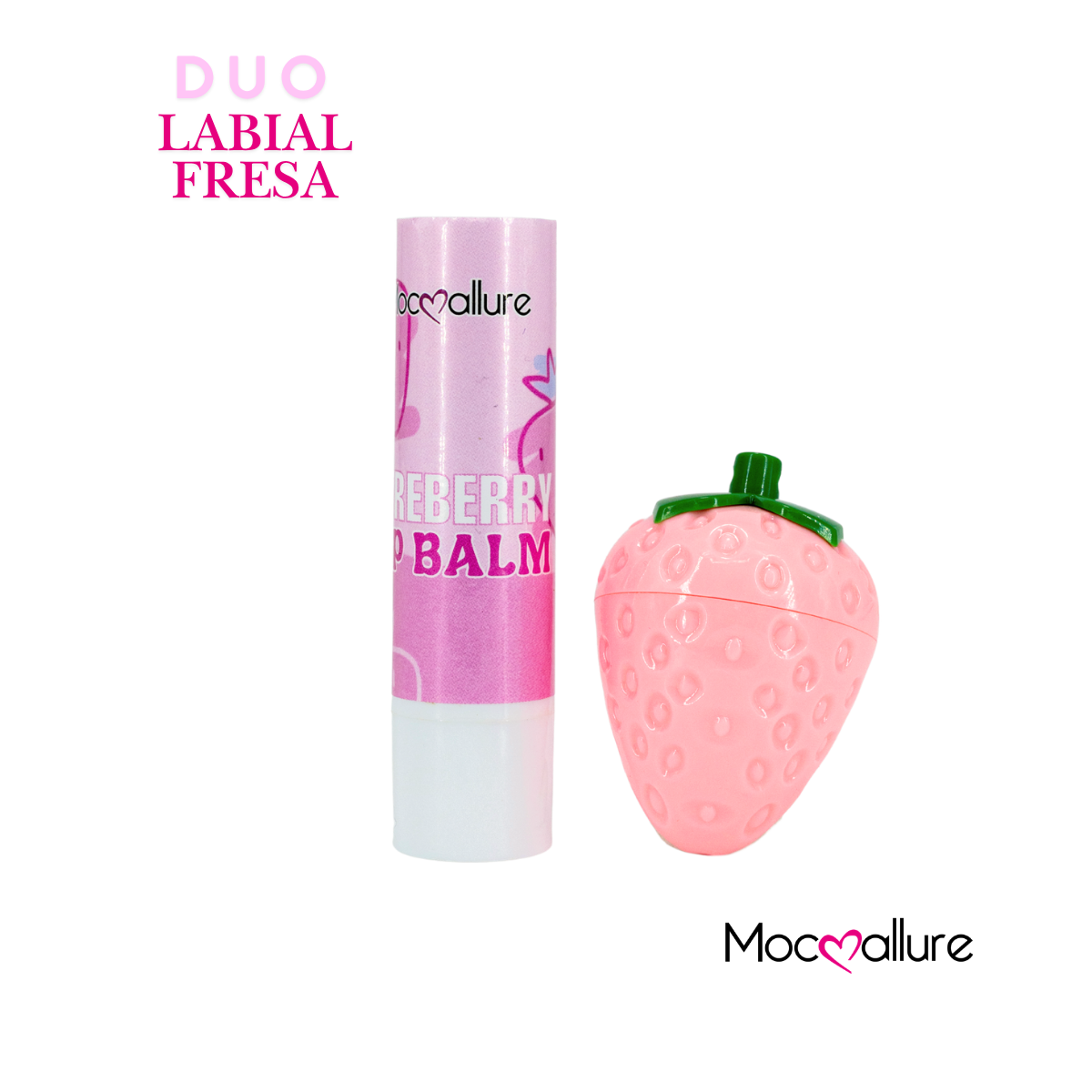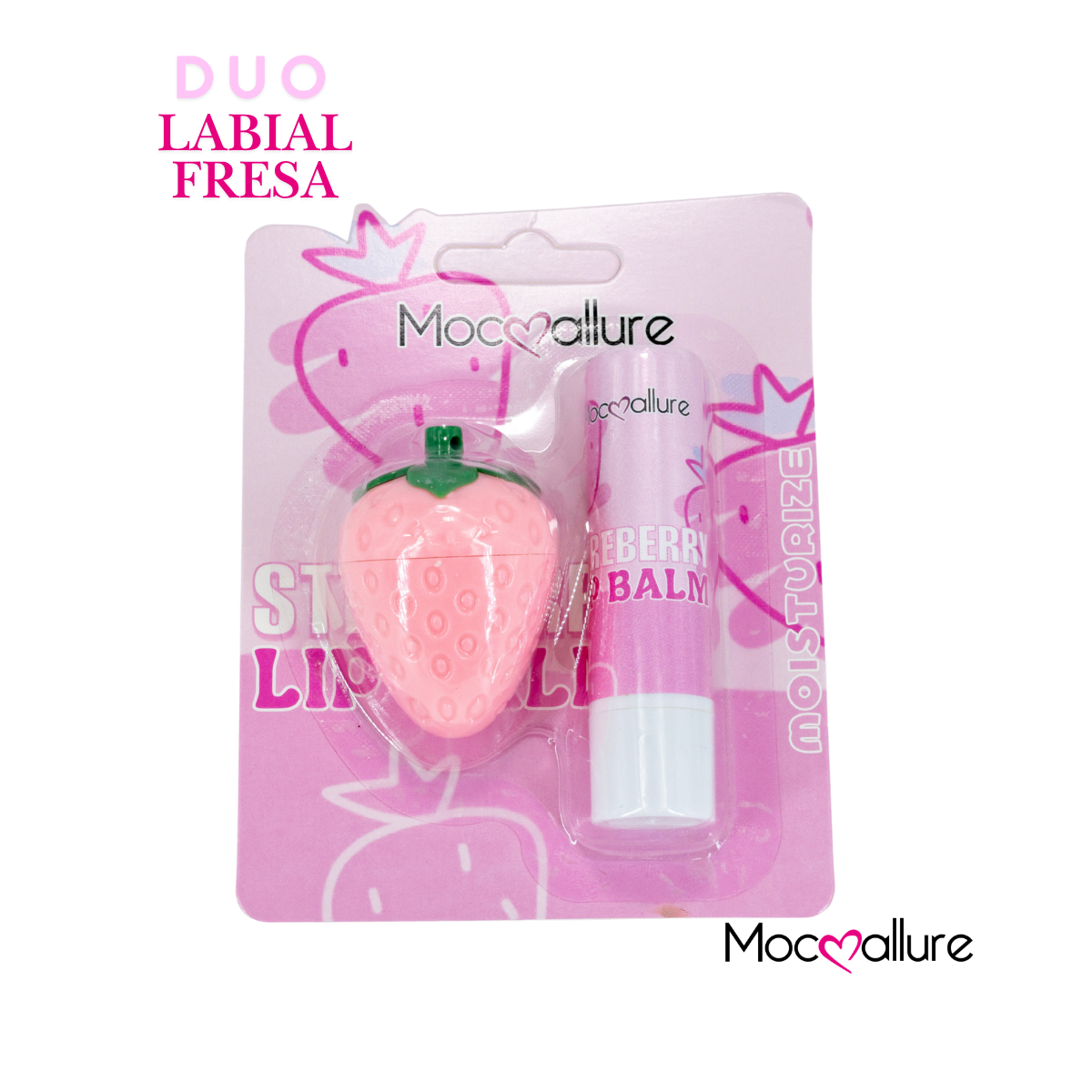 Mocoallure Labialy balsamo en forma de Fresa Dúo Fuisha - 2 en 1 Labial y Brillo Hidratante